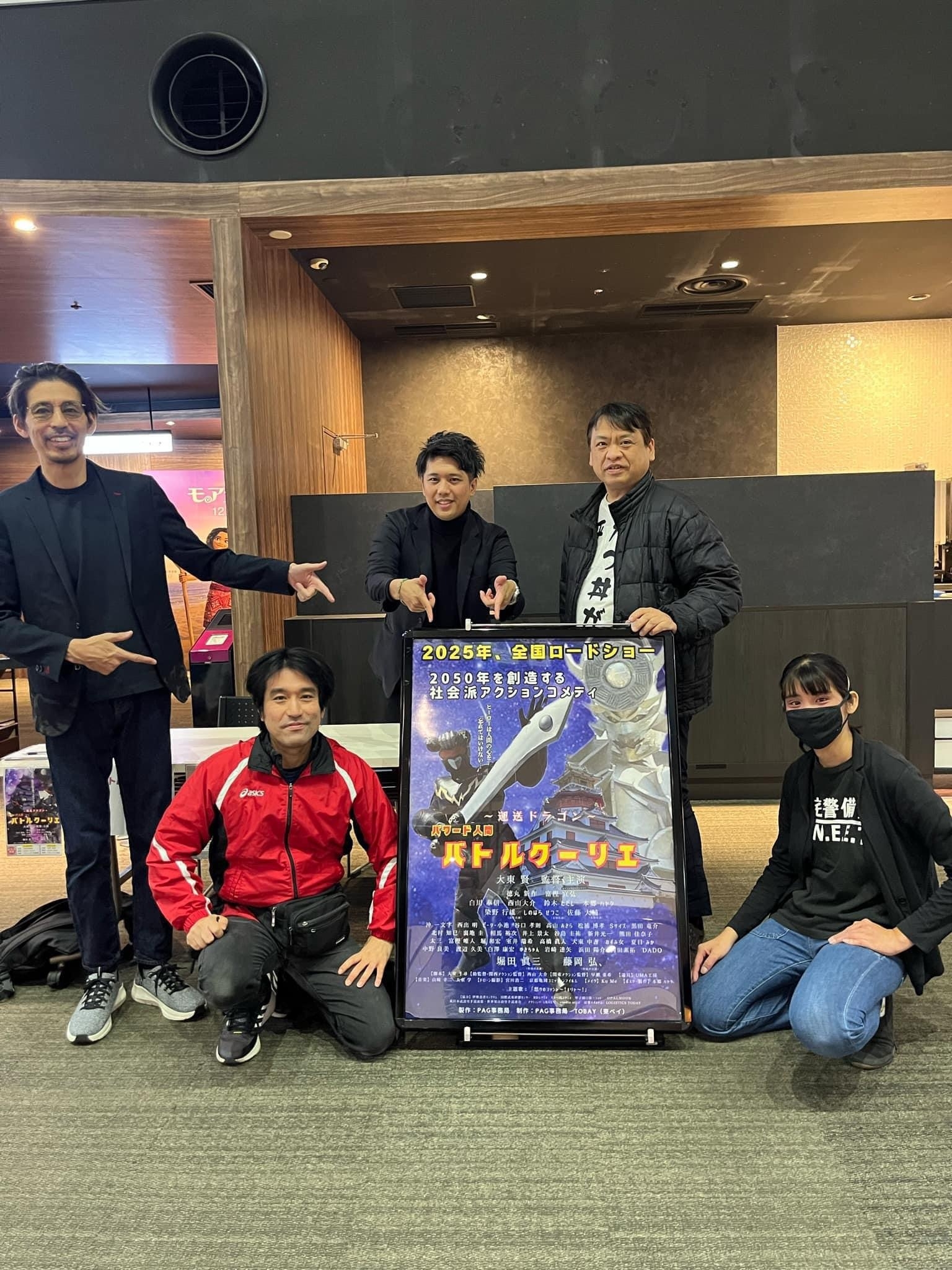 12月6日のイオンシネマ板橋の試写会で当映画に声優出演の特撮ヒーロー界レジェンドの藤岡弘、と大東賢監督の恩師、香港アクション映画界レジエンドの倉田保昭、2大スターからお祝いメッセージがあり、銀幕スター堀田眞三が登壇しました。