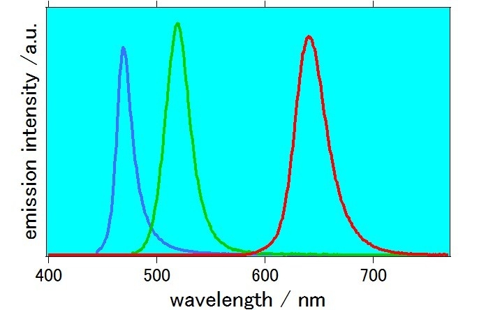 - 発光スペクトルの半値幅が狭いので、他の量子ドットと比較してより鮮明な色を出せるディスプレイ用途に応用できる
