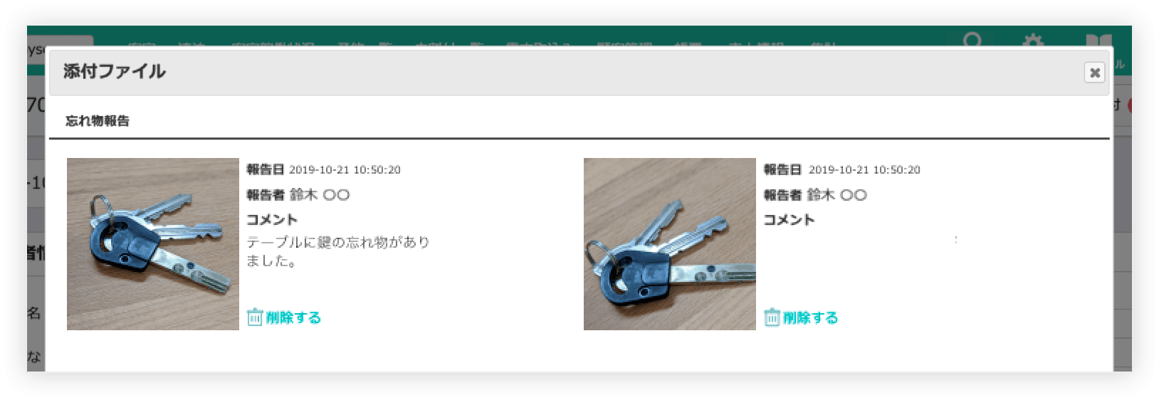 ・忘れ物を写真ファイルなどで管理し、お問い合わせ対応を効率化