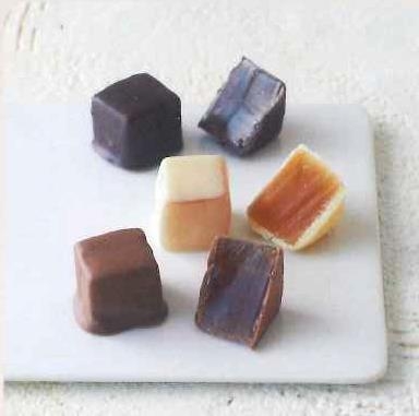素焚糖で作り上げたまろやかなゼリーをミルク、スイート、ホワイトの3種のチョコレートでやさしく包み込みました。