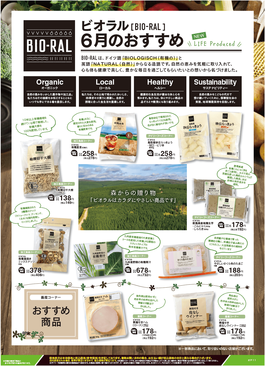 “おいしい” “ワクワク” “ハッピー” をお届けするライフコーポレーションは、健康志向のお客様におすすめしたいBIO-RAL(ビオラル)商品を、毎月お試し価格にて販売いたします。6月のおすすめは11品。第2弾は「有機麦茶」「有機切干大根」「有機素焼きミックスナッツ」をご紹介いたします。