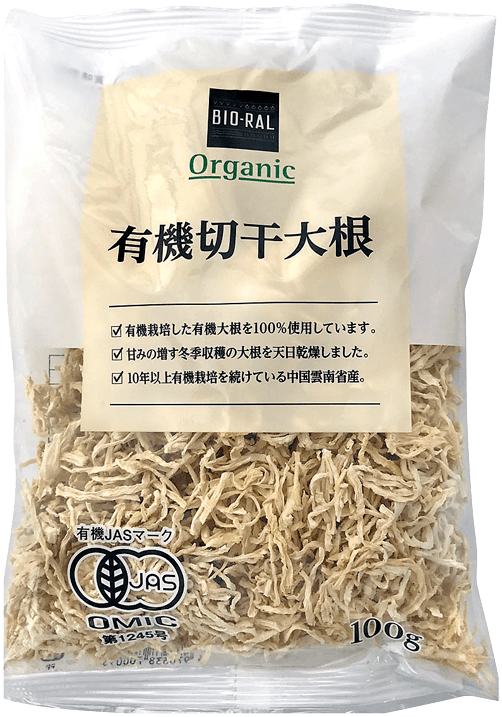有機栽培した大根を100%使用。甘みのます冬季に収穫し天日乾燥しました。