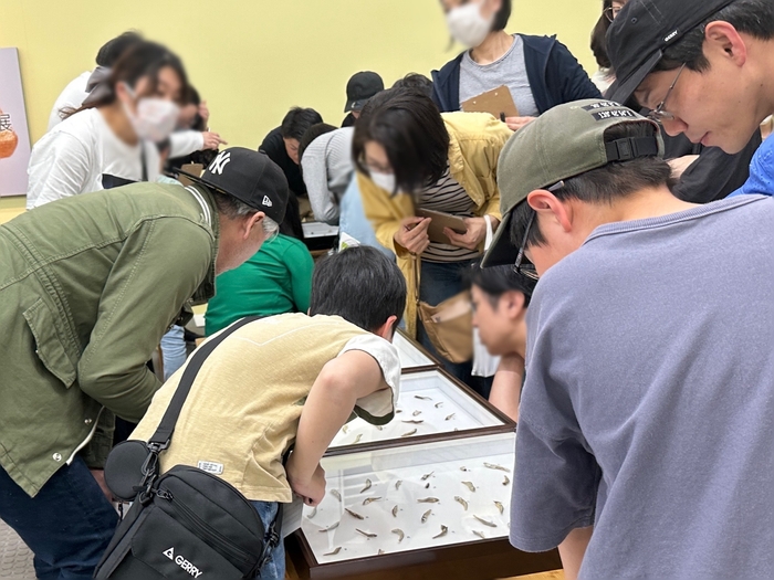 100匹の煮干しの中から木彫りの煮干しを探す来場者
