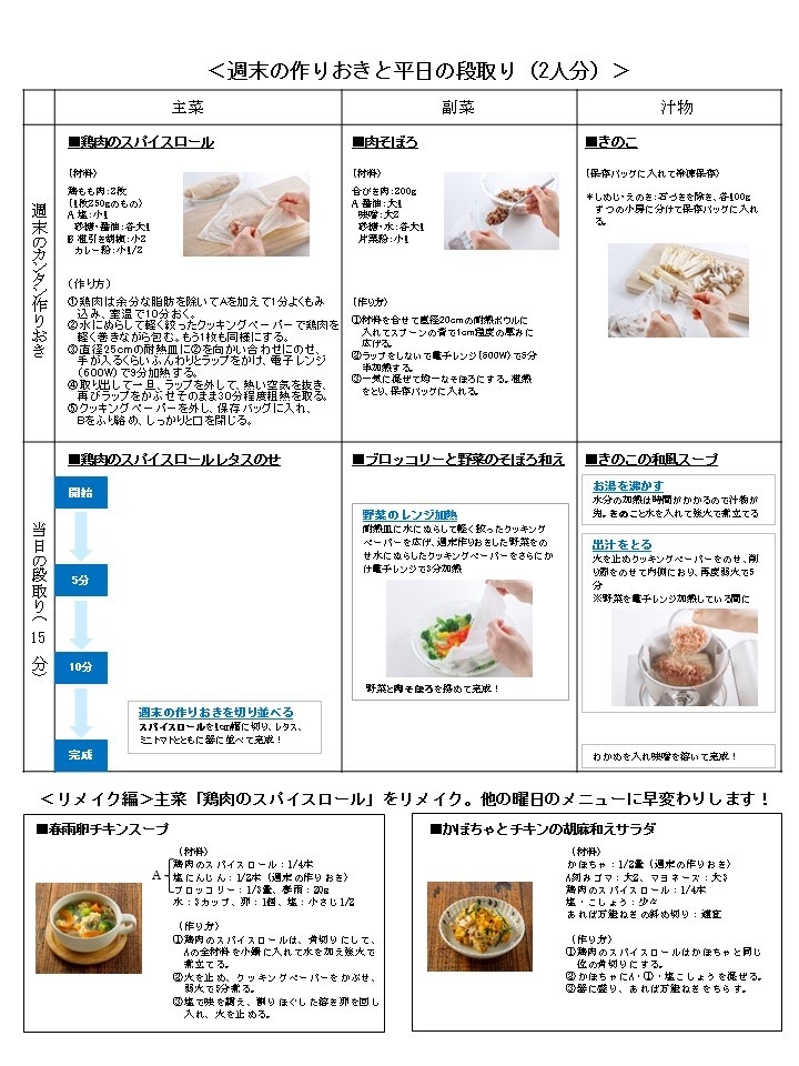 週末の作りおきと平日の段取り(2人分)> <リメイク編