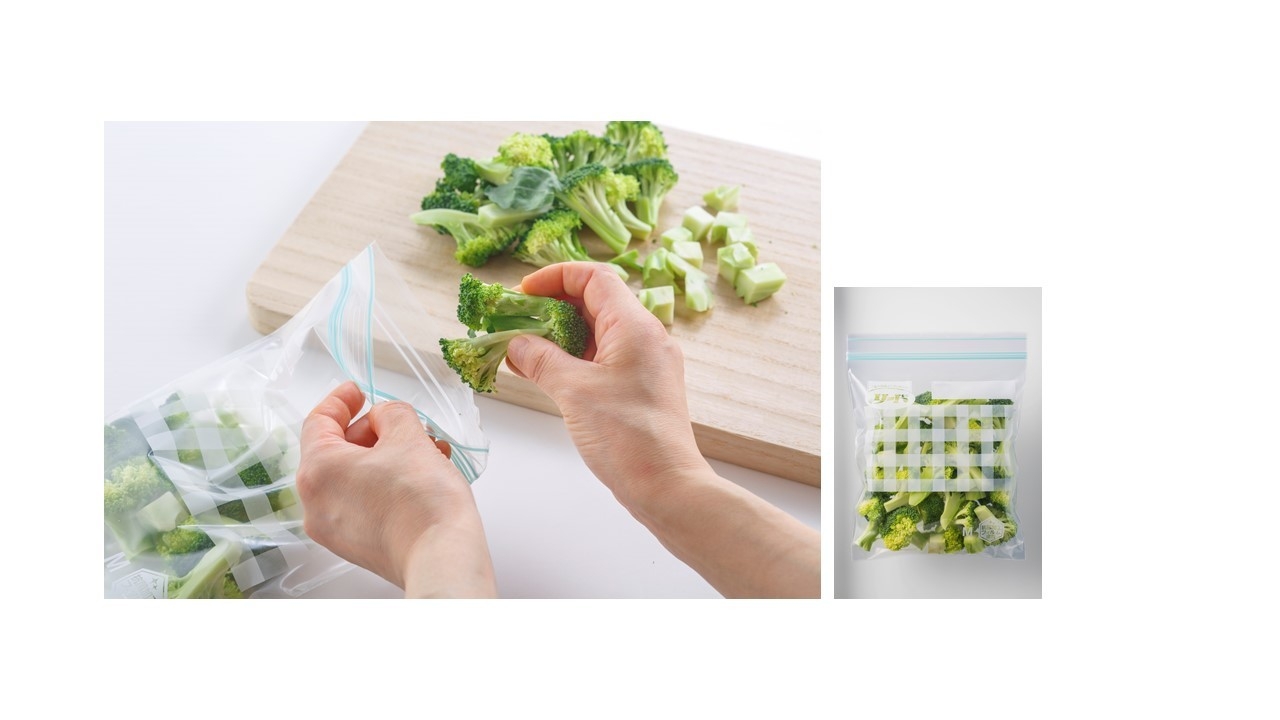 野菜を切るまたは小房に分けて保存バッグに入れて冷蔵。急な予定変更の場合はそのまま冷凍庫へ移すだけ。