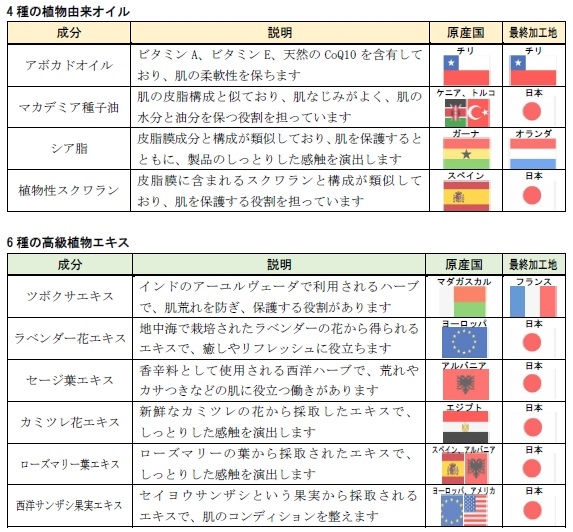 原産国・最終加工地まで追求した、天然成分のみを使用しています。