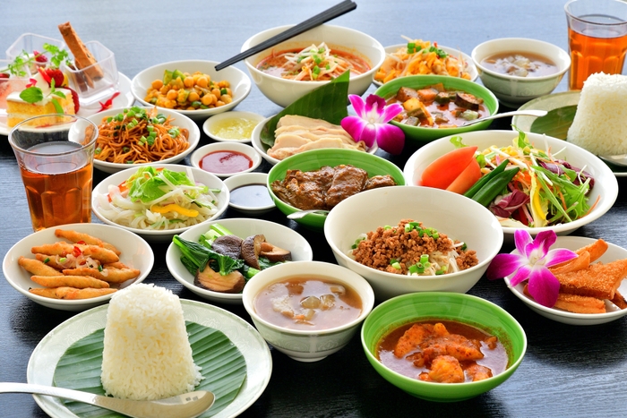 アジアの料理がテーブルを埋め尽くすシンガポールのローカルフード“ナシパダン”