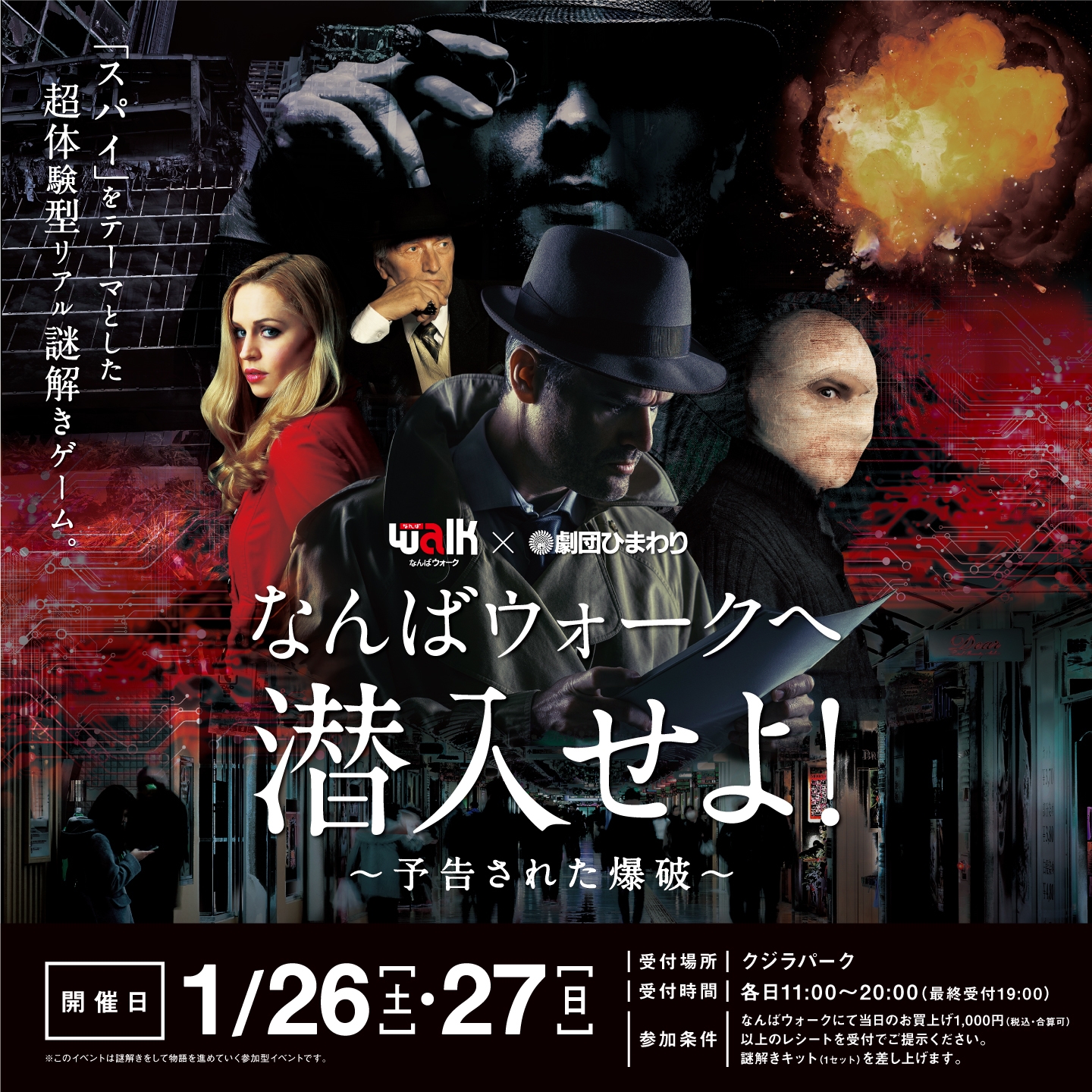 超体験型リアル謎解きゲーム 「なんばウォークへ潜入せよ!~予告された爆破~」 劇団ひまわりが演出参加で半端ない臨場感! 1/26(土)・27(日)の2日間開催!