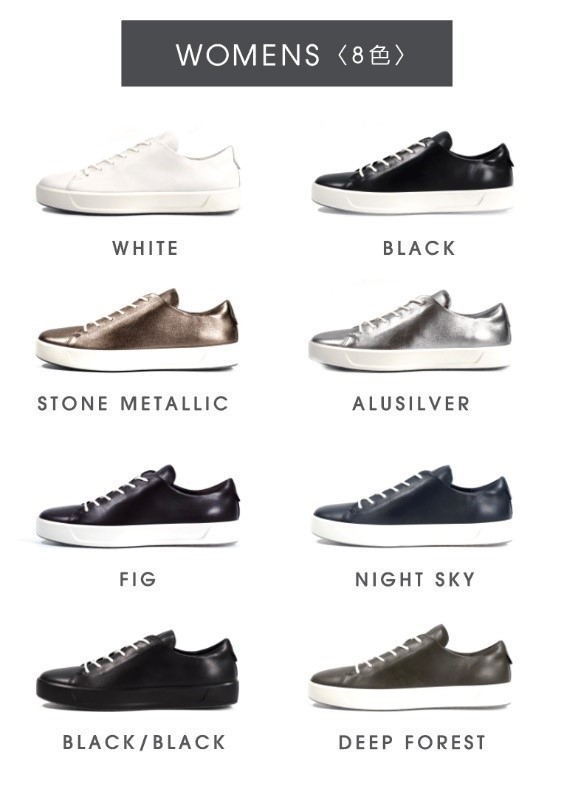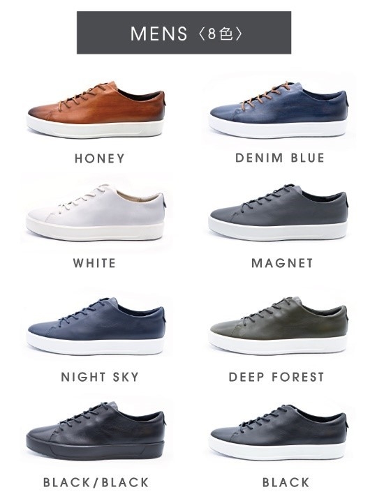 メンズ・ウィメンズ各8色のシューズアッパーには、世界中のブランドにレザーを共有するレザーメーカーの顔も持つECCOレザーのプレミアムレザーを採用。同じレザースニーカーでありながらも、カラーリングとその質感でそれぞれのスタイルを楽しむことができます。