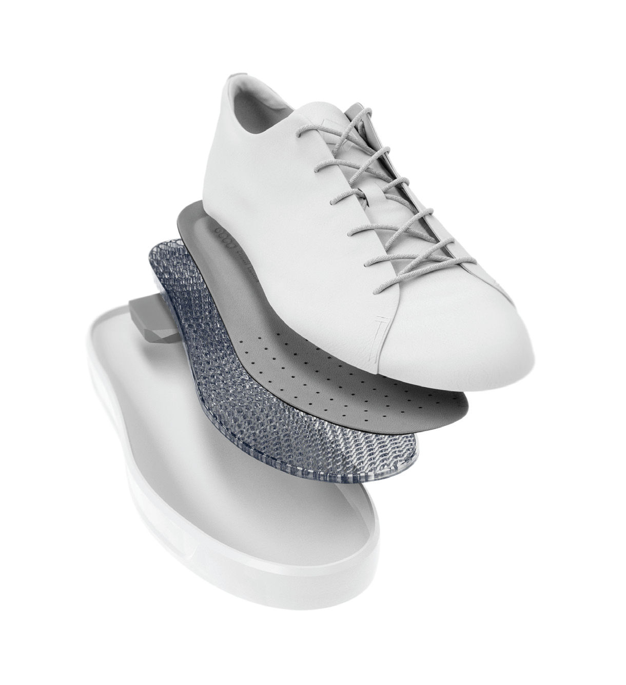 フットウエア市場に機能的にカスタマイズされた『QUANT-U』を発表。靴を履く個々の人の足型と足の自然な動きに合わせた3Dプリンター・ミッドソールをECCOのアイコン的存在のシューズに取り入れました。カスタマイズされた靴には定価に追加料金が加わり2018年4月、期間限定でアムステルダムにあるECCOのコンセプトストア『W-21』で展開しました。『QUANT-U』はECCOが培ってきた靴製造における伝統に技術、素材と更なる履き心地の良さを融合し、新時代のシューズ業界への発展と革新を目指します。