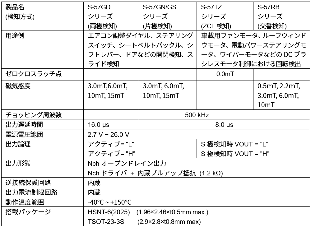 世界最薄パッケージ採用 車載用ホールIC ラインアップ拡充 S-57GD/S-57GS/S-57GN/S-57TZ/S-57RBシリーズを発売 | NEWSCAST