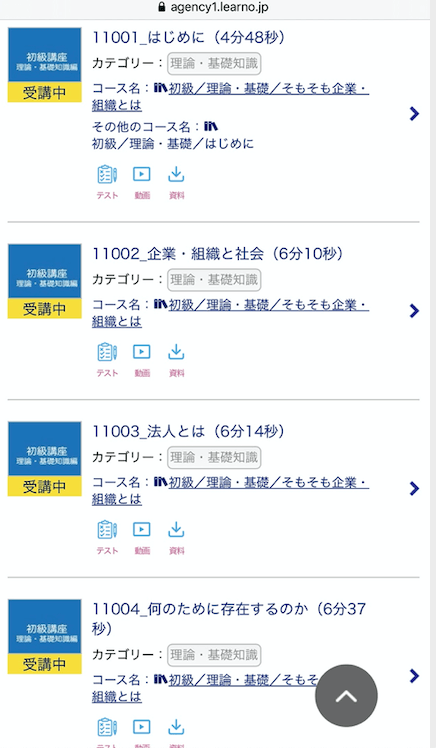 ・講座視聴後に簡易テスト(1問)で毎回復習(コース単位で総復習テスト)