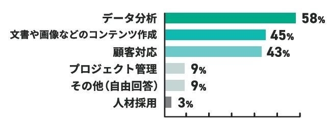 ・会計事務所では、「データ分析」が58%、次いで「文書や画像などのコンテンツ作成」が45%、「顧客対応」が43%