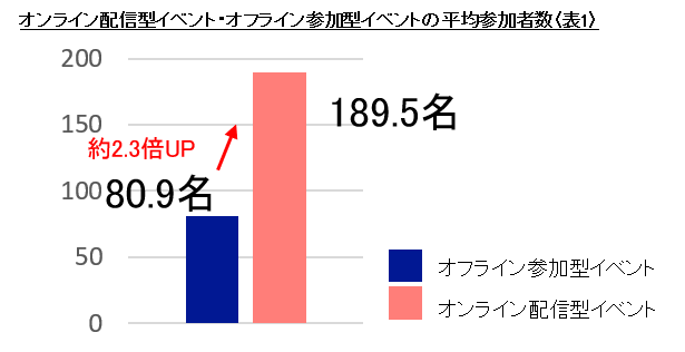 ① イベント参加者数は、オンライン配信時がオフライン開催時の約2.3倍に!