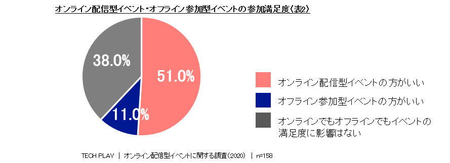 ② TECH PLAYのオンライン配信型イベント参加者の51%が「オンライン配信型イベントの方がいい」と回答