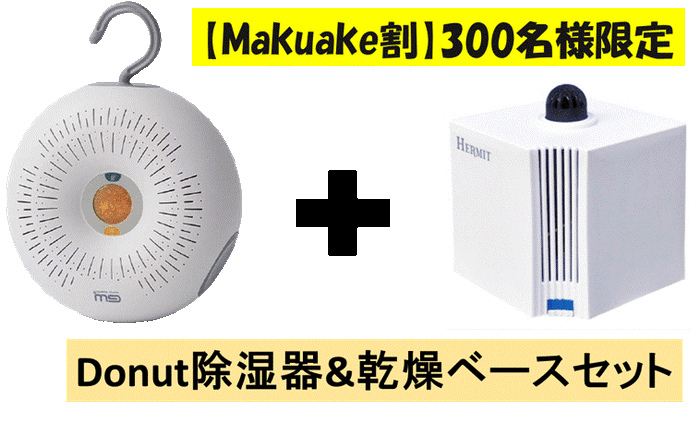【Makuake割】先着300名様限定 DONUTS除湿器+乾燥ベースセット:9,350円