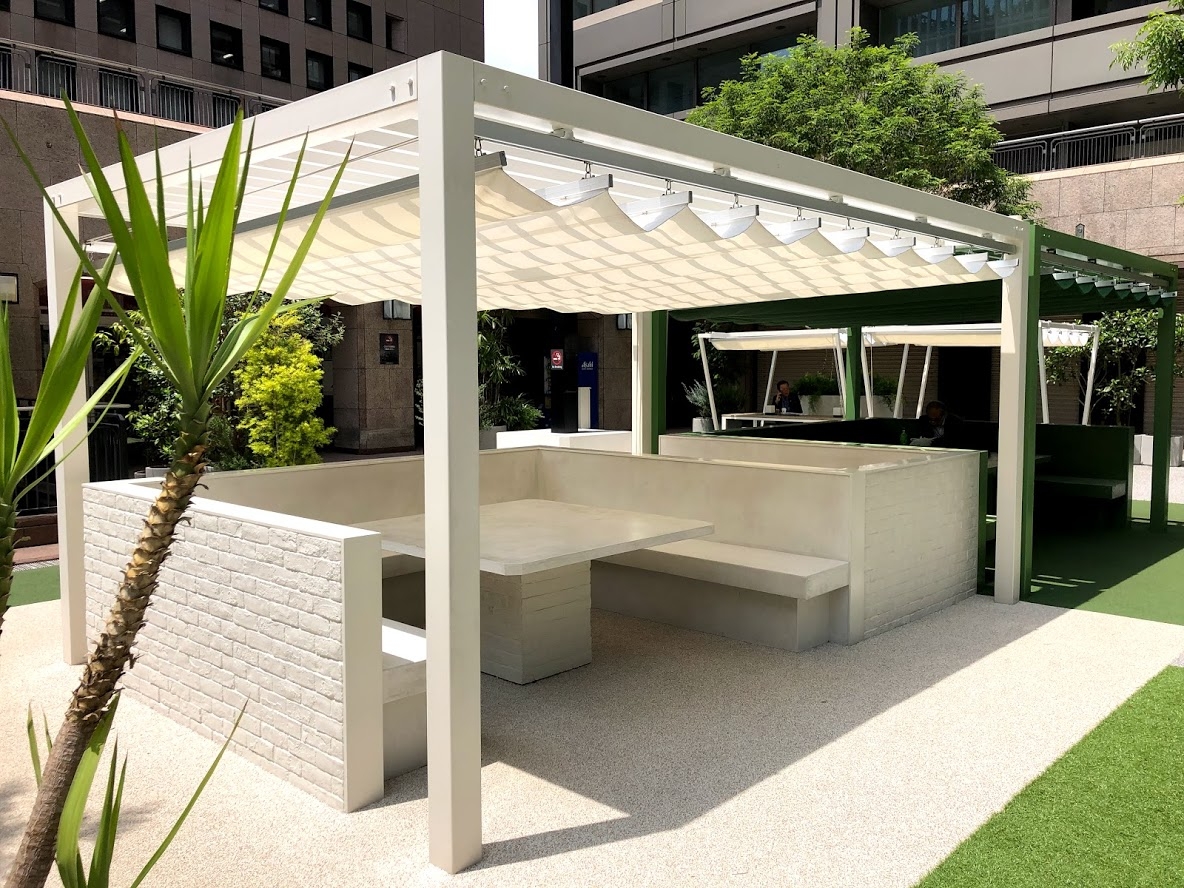 ヒビコクテラスは日比谷国際ビル敷地内にあるサードプレイスです。天気の良い日は沢山のオフィスワーカーさんで賑わっています。