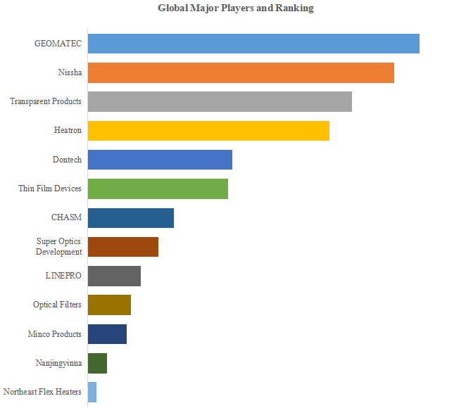 YHResearchのトップ企業研究センターによると、透明フィルムヒーターの世界的な主要製造業者には、GEOMATEC、Nissha、Transparent Products、Heatron、Dontech、Thin Film Devices、CHASM、Super Optics Development、LINEPRO、Optical Filtersなどが含まれている。2023年、世界のトップ5企業は売上の観点から約63.0%の市場シェアを持っていた。