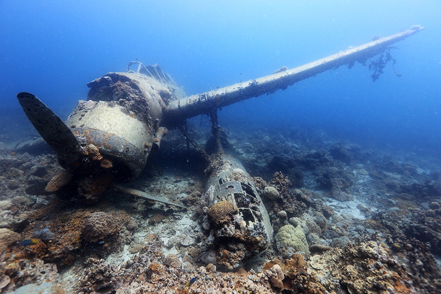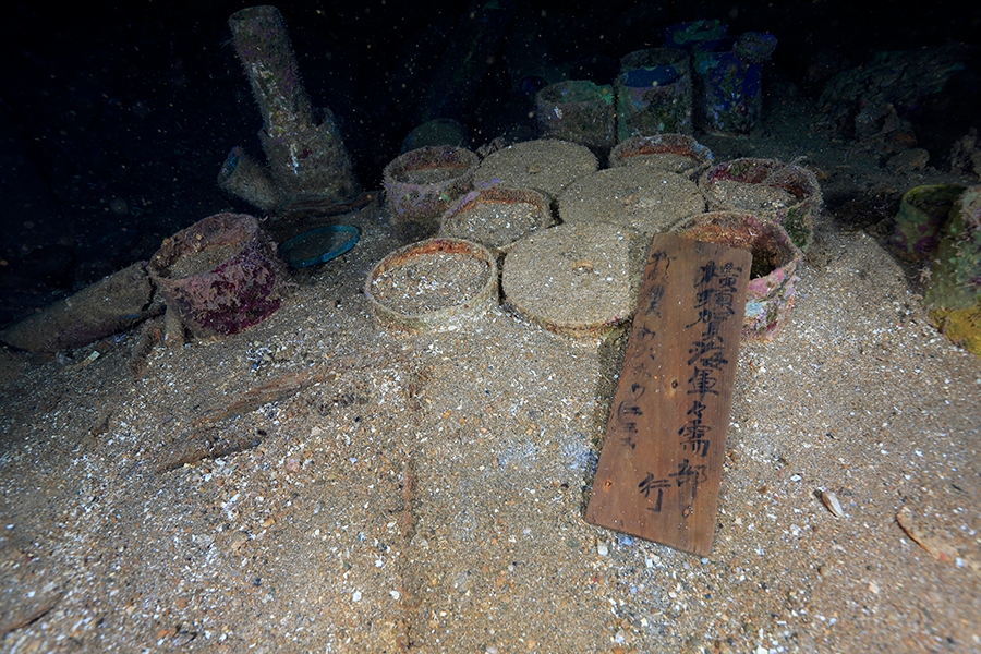 インドネシア、グアム、コロン(フィリピン)、サイパン(北マリアナ諸島)、ソロモン諸島(ガダルカナル島、ツラギ島、ニュージョージア島)、ビキニ環礁(マーシャル諸島)、トラック諸島(ミクロネシア連邦・チューク州)、パラオ、ラバウル(パプアニューギニア)、日本(沖縄県・山口県)の海底に眠る、艦船・航空機・潜水艦などを撮影した写真パネル、約60点