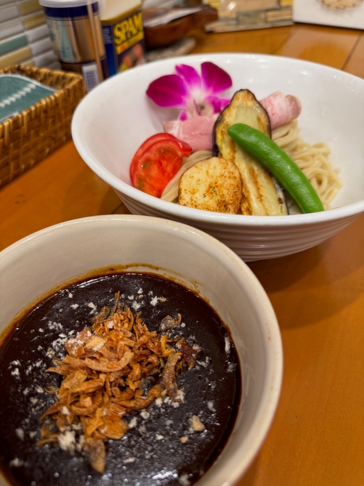 100時間カレーをベースに使用した濃厚なスープにハワイの水を使用した自家製麺を合わせ、夏野菜などをトッピングし南国の風を感じる特製つけ麺が誕生しました!ここでしか味わえない唯一無二の一杯を、ぜひお楽しみください。