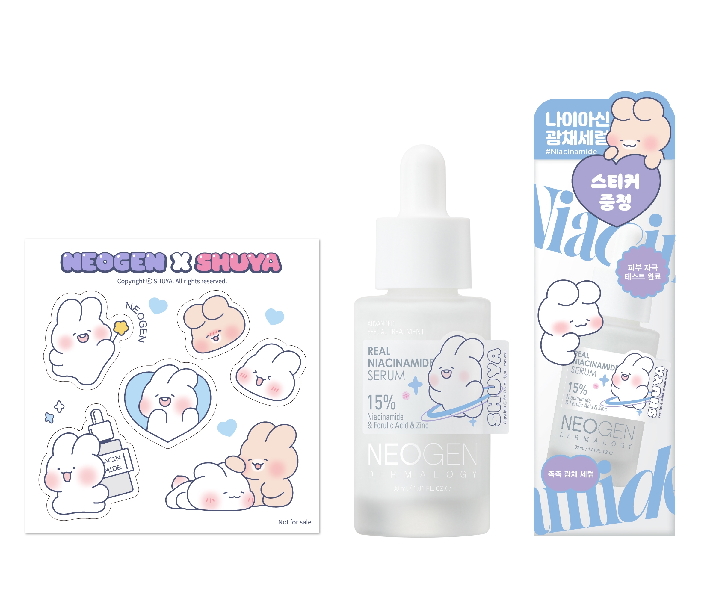「NEOGEN X SHUYA」コラボ限定パッケージは、日本で特に人気の高いナイアシンアミドマスクをはじめとした人気商品3種となっており、2月14日(金)からQoo10と楽天のオフィシャルサイトでお買い求めいただけます。