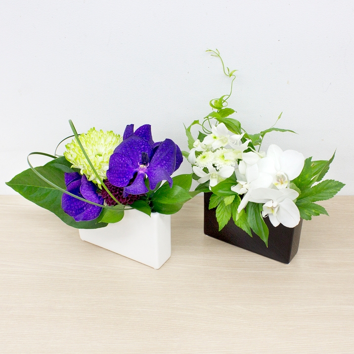 蘭やスタイリッシュな葉物をメインにデザインされたお供え花。