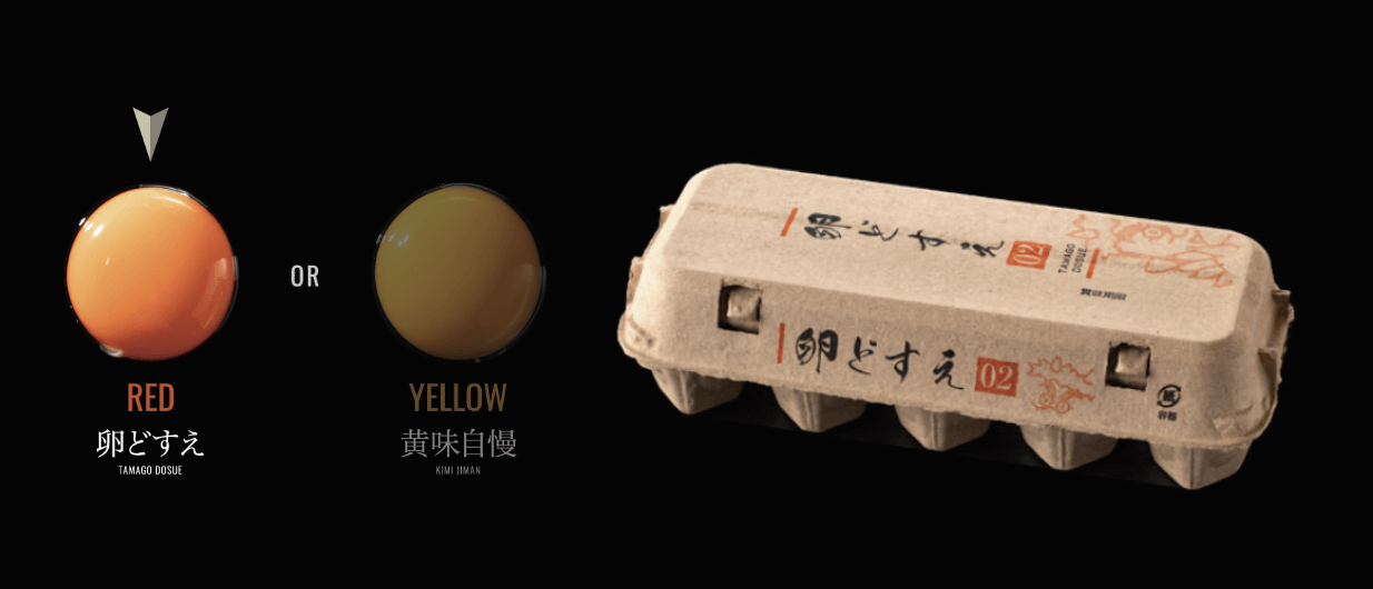卵を産む鶏の飼料に、魚粉と赤パプリカを多く配合。濃厚な旨みとコクはもちろん、味の深みを目で見て感じる、福知山市グリーンファームソーゴの「卵どすえ02」