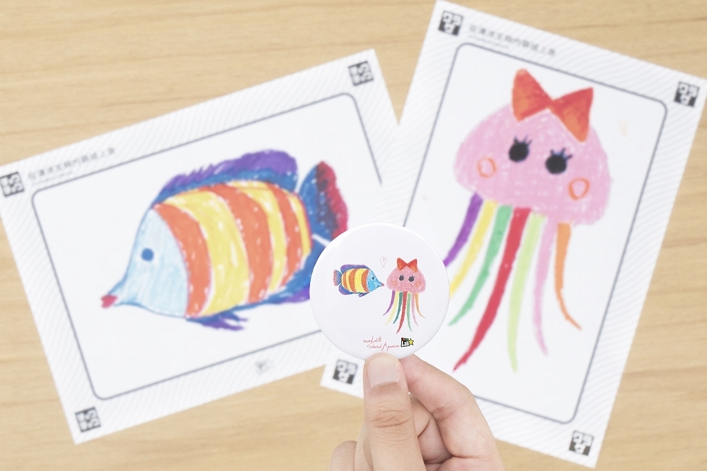 また、「お絵かき水族館」で描いた絵のオリジナル缶バッジをその場で作る「缶バッジファクトリー」を開催します。開館時間中、どなたでも参加が可能です。