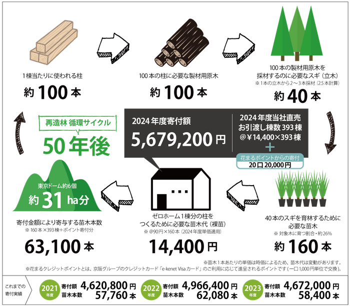 株式会社ゼロ・コーポレーション(本社:京都市中京区、社長:菊本雅幸、以下「ゼロホーム」)は、宮崎県のスギ植林・育林を目的とする再造林支援2024年度分として、約567万円の寄付金の贈呈を2024年12月に行いました。この寄付は、ゼロホームが独自で進める「苗木を還そうプロジェクト(以下、「苗木プロジェクト」)」の一環として2021年にスタートし、今回で4回目です。同プロジェクトにおけるこれまでの寄付金合計は、約1993万円となりました。