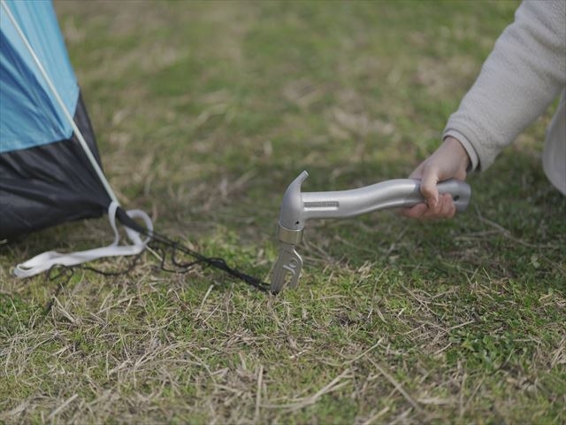 キャンプでテントを張る際には、ペグハンマーが必要となるため、自社製品の第一弾である「アルペグ」に合うアルミ製のペグハンマーを提供することを考えました。ただし、全ての部分をアルミでつくると、打ち込む際に曲がってしまう可能性があるため、先端部分はステンレス製にしました。その他の部分はアルミを使用し「アルミ鋳造メーカーならではのペグハンマー・アルカナ」を開発しました。