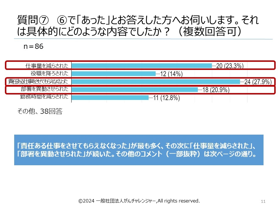 昨今、国(厚生労働省)の後押しもあり、企業・団体において、「治療と仕事の両立」についての制度普及などが進んできていますが、治療しながら仕事を継続できる環境が整いつつある一方、「がん治療からの復帰後や治療と両立している最中に、自分の意思とは無関係に職務内容や勤務時間が変わったり(減ったり)、その結果社内における出世コースから外れていったりする」事象があることが分かってきました。