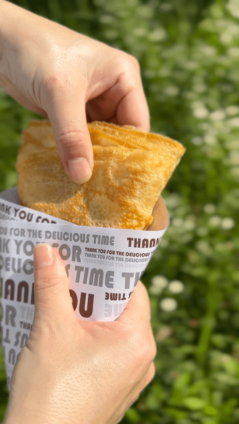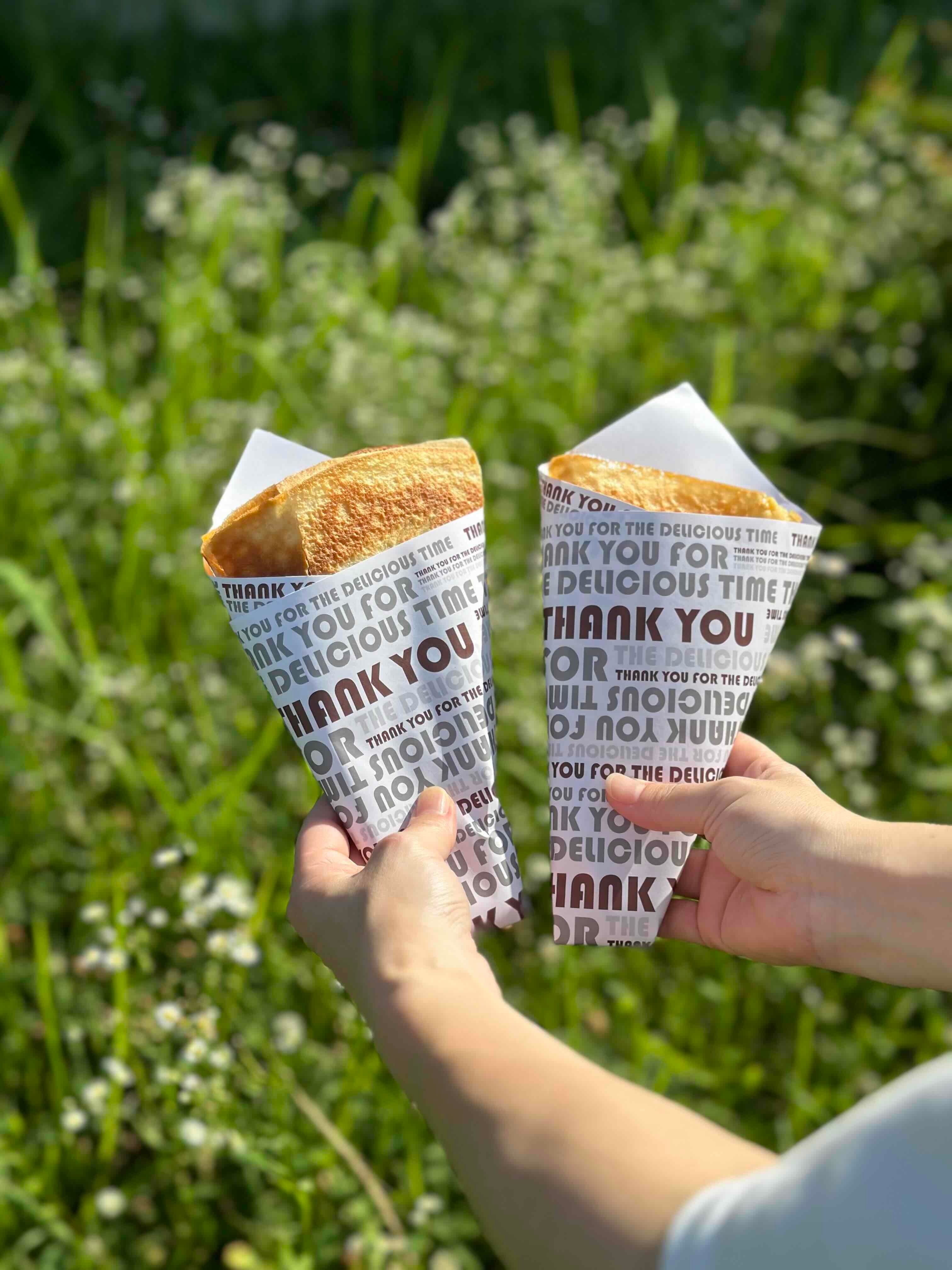 関西でパリパリ新食感のシュガーバタークレープが大流行しています。クレープといえば、もちもちの食感とたっぷりの具材をイメージしますがその概念を覆すクレープです。生地が主役で、食べるとパリパリサクサクの音の出る食感が大人気です。クレープ生地そのものの味と、シュガーバターの味わいが存分に楽しめます。