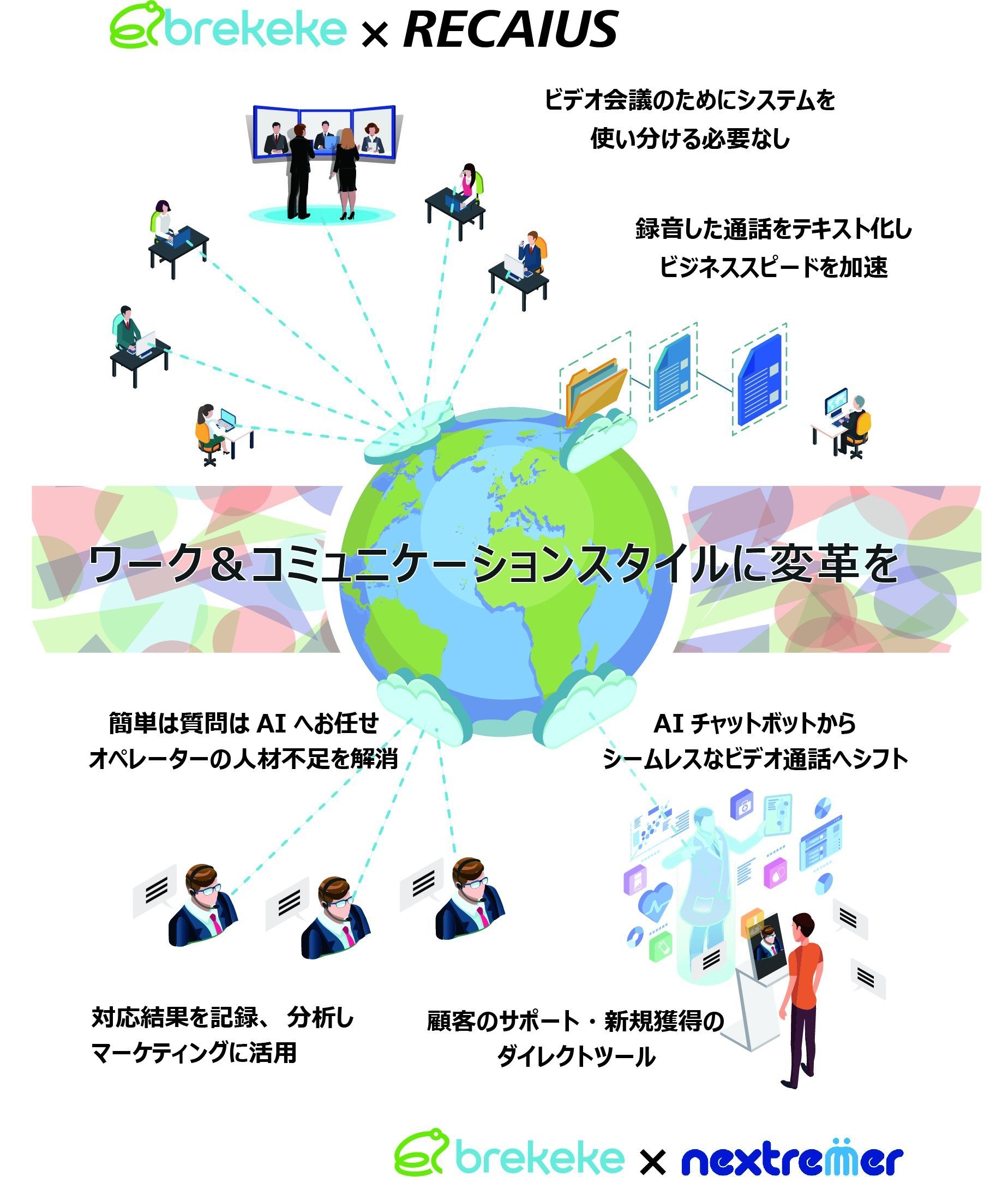 株式会社日本ブレケケ(本社:東京都豊島区、代表取締役:山出 晋)と株式会社Nextremer(本社:東京都板橋区、代表取締役CEO:向井 永浩)は6月13日から15日に幕張メッセで開催される「APPS JAPAN(アプリジャパン)2018」に共同出展いたします。本展示では、NextremerのAI対話システム『minarai(※1)』と『Brekeke PBX(※2)』によるビデオチャットを組み合わせた「対話AIからオペレーターへのシームレスな連携による顧客対応」のデモンストレーションを体験いただけます。