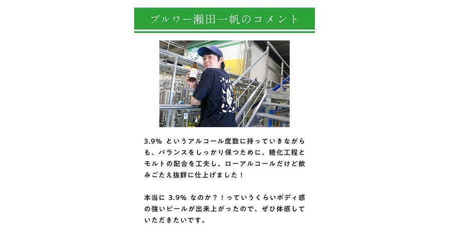 ビアスタイルは当社初挑戦のローアルコールヘイジーIPAです。