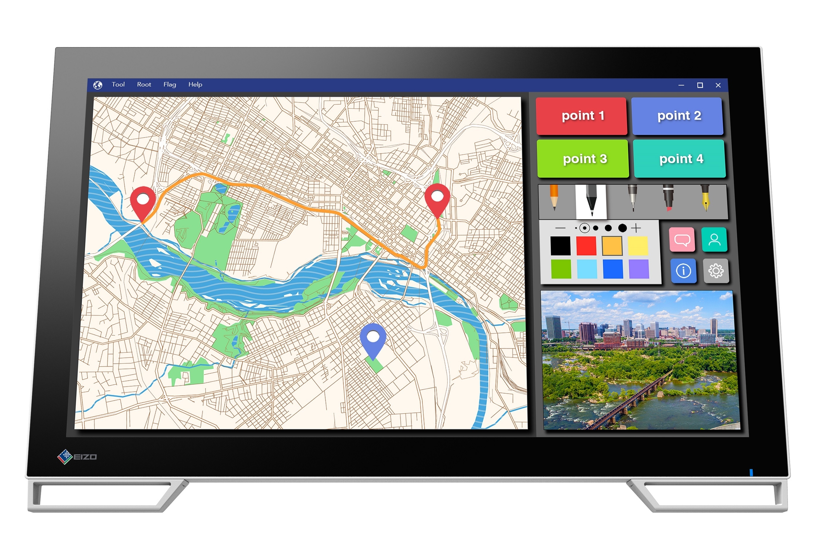 DuraVision FDF2182WT(以下 FDF2182WT)は、10点マルチタッチに対応し、複数人でのドローイングや指でのピンチ操作が可能な21.5型フルHD解像度のタッチパネルモニターです。当社の21.5型タッチパネルモニターとして初めて、タッチ方式に「PCAP(投影型静電容量)方式」を採用しました。その特長は以下のとおりです。