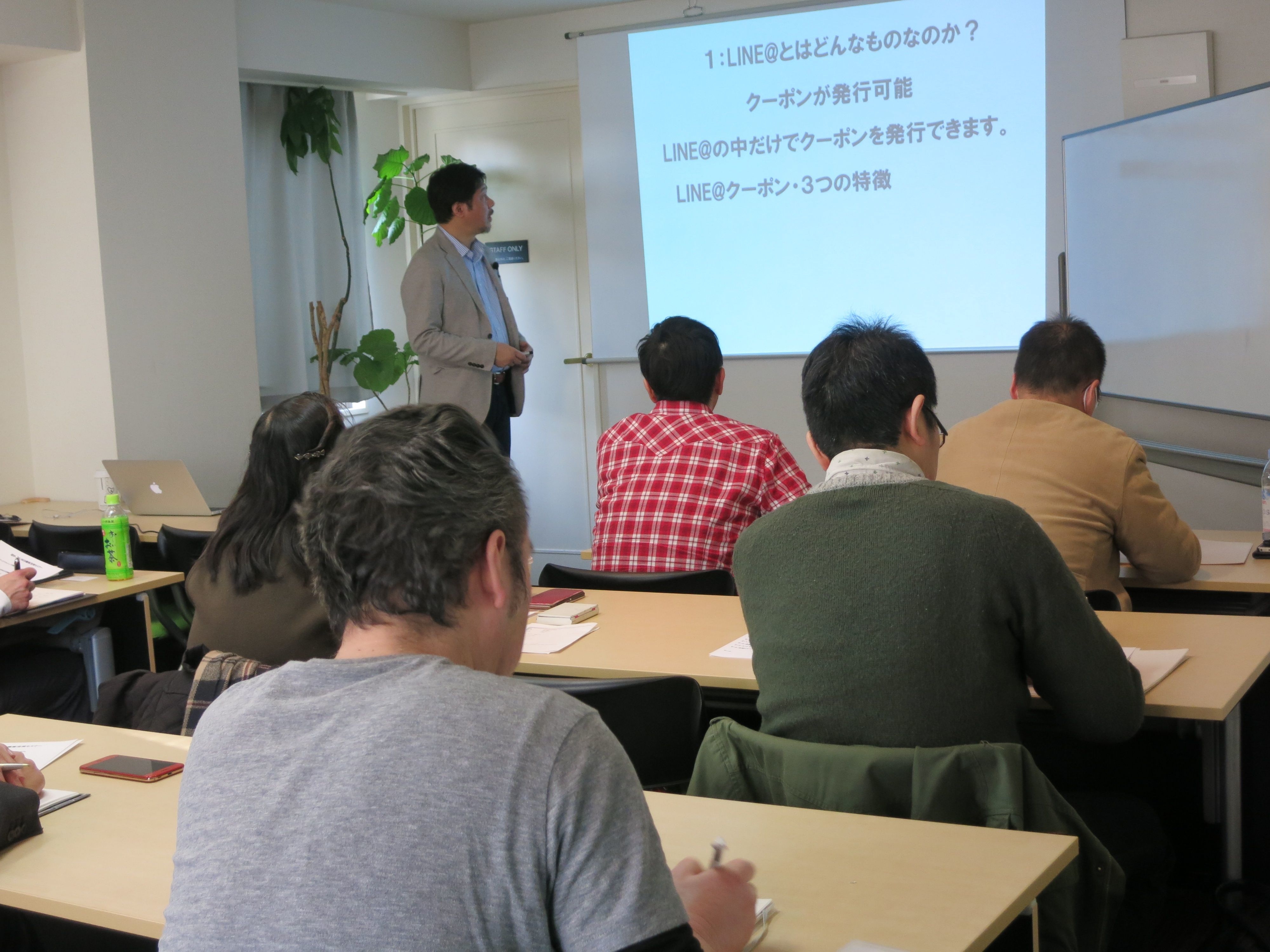 今、最もホットに集客ができるツールとしてLINE@があります。そのLINE@をセミナーを通じて徹底活用に集客に繋げてもらい、3年、5年、10年…と地域に根付き消費者を魅了し続けられるような飲食店を増やしていきたいと思い、2018年1月29日(月)都内で極秘にLINE@徹底活用セミナー(¥5,000)を開催しました。