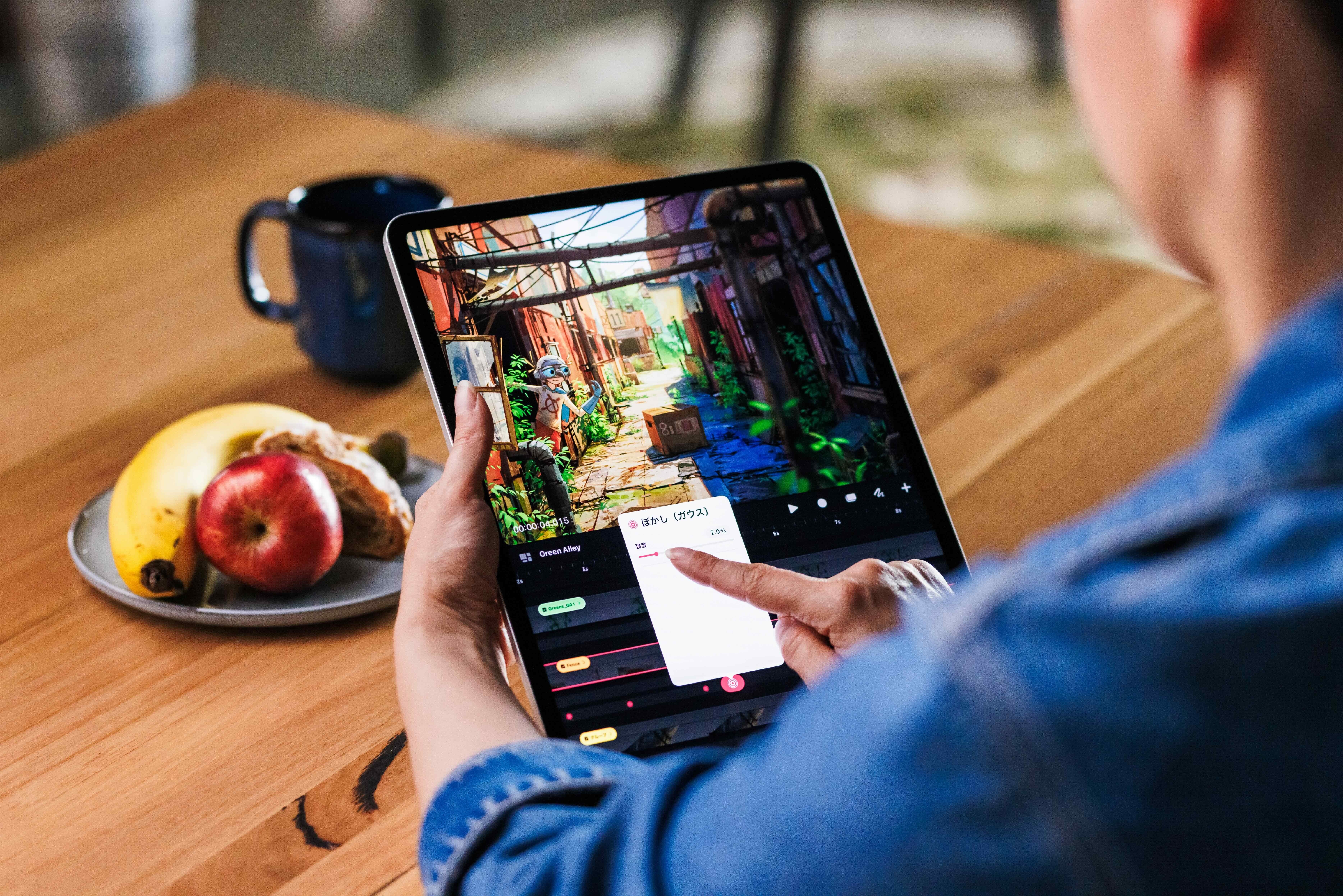 タッチ操作でアニメーションを制作できる、これまでにない手段を提供します。ユーザは美しい手描きのアニメーションを Procreate のテクスチャ付きブラシを使って作成し、強力なアニメーション化されたエフェクトやオーディオ、動画を加えて、アートワークに命を吹き込むことができます。