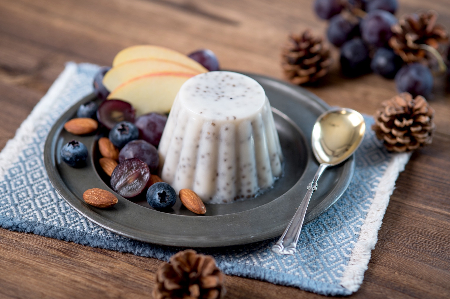 Wスーパーフードの相乗効果で腹持ちアップ「チアシードとアーモンドミルクのプリン」