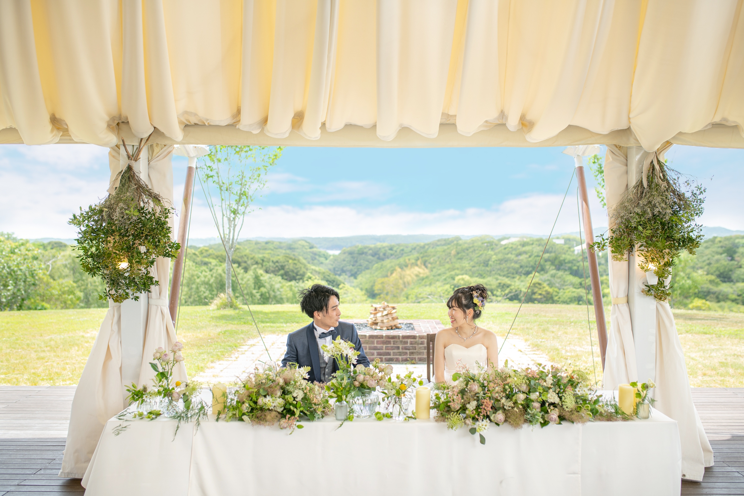 都会の喧騒から離れた広大な自然環境の中、爽やかな潮風を感じ、開放的な舞台で、お二人の一生に一度の大切な記念を、思い出に残せますようお手伝いさせて頂きます。