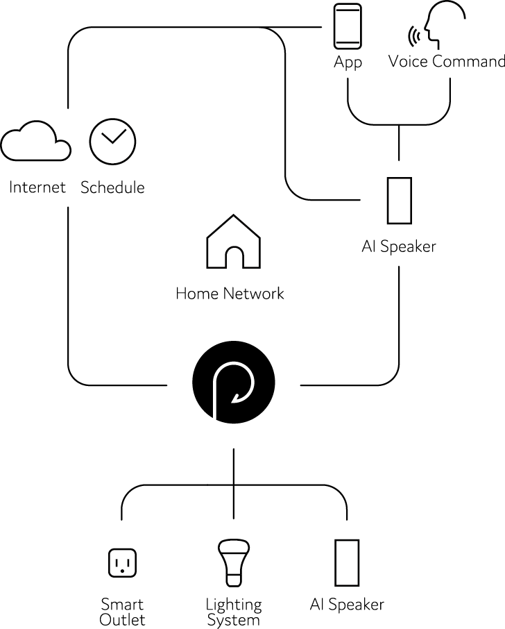 POWER SPOT(TM)は専用アプリを使用し、ホームネットワークと接続します。照明アイテムやAIスピーカーなどとも連動可能。使用方法のアイデアは無限大です。