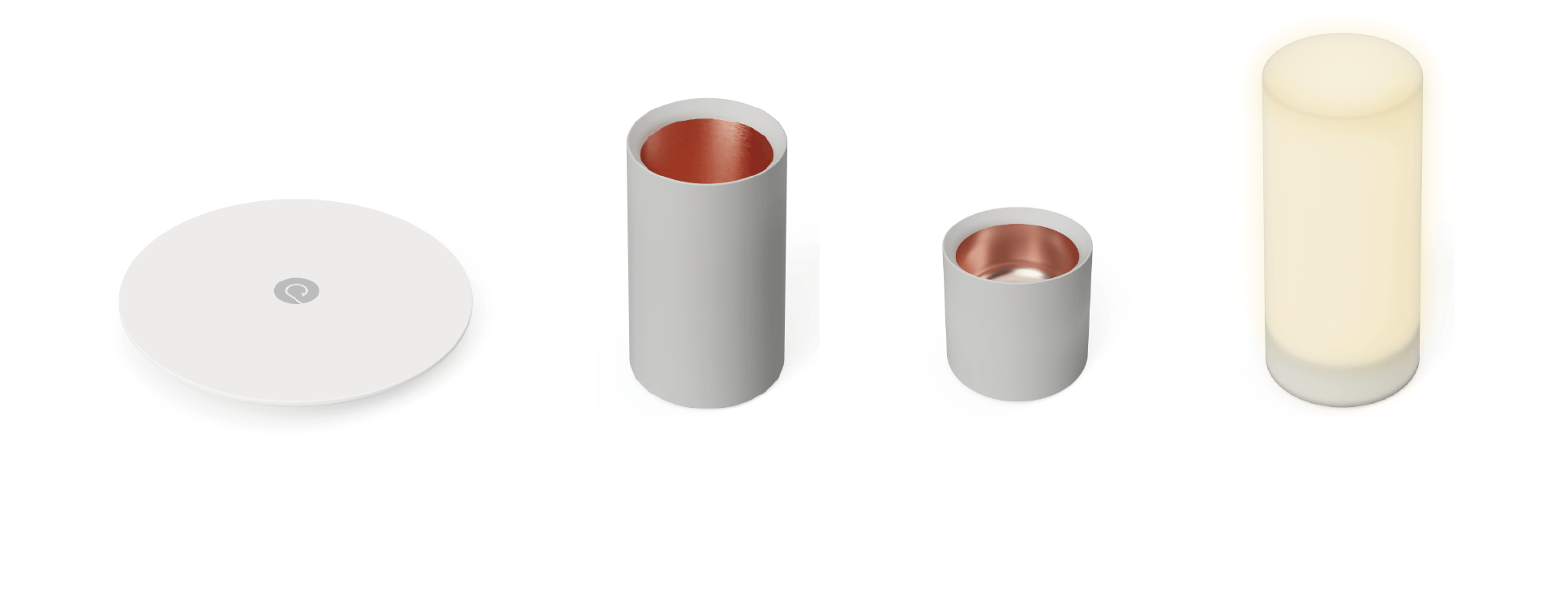- 「HOME」と呼ばれる基本ユニットの送電器。最大4つの「HOME」がUSB-typeCで連結できます。