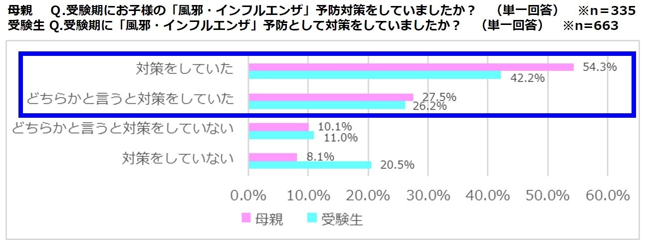受験期の「風邪・インフルエンザ」予防対策の実態