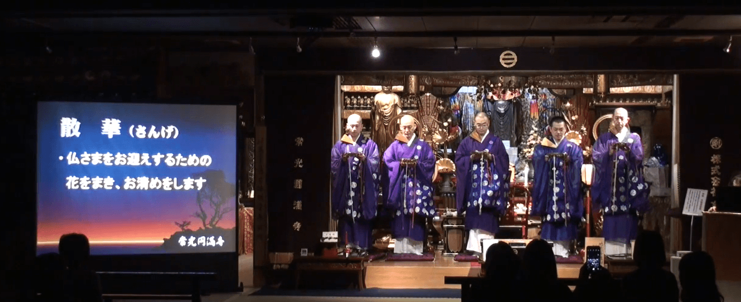 声明は今日では聖歌やゴスペルと同様に伝承された無伴奏の音楽として世界的に脚光を浴びています。仏たちとともに自らも無我の境地になり、自分の心に向かって魂を共振させていく魂の声楽です。古来より伝わる節のある美しいお経である声明。心に響く力強く美しい生の声明をお聞きください。