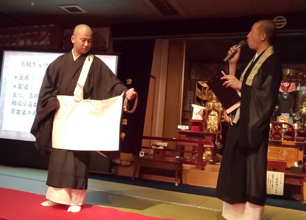 僧侶には、様々な衣体がございます。実際に僧侶の袈裟や衣の姿をみていただいて、袈裟と法衣の違い、どのような時にどの衣体になるのかなどお話させていただきます。
