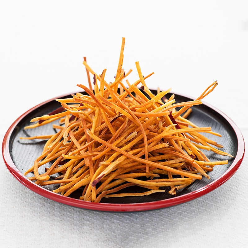 「松本ケンピ」は、おいも日和松本中町店で今年販売を開始し、GW期間中には1日に1,000袋以上を販売した大人気の商品です。安曇野の自社農園で育てたさつまいもや茨城県産のさつまいもを使用しており、自社独自の製法で一つ一つ丁寧にカットしているため、通常のケンピよりも細いのが特徴です。パッケージには松本城をデザインし、松本観光に訪れられた方にも手土産として使っていただきやすいようデザインしております。松本の土産の新定番として、「山賊焼き」など長野・松本ならではの地域限定フレーバーも展開しながら、日々製造しています。