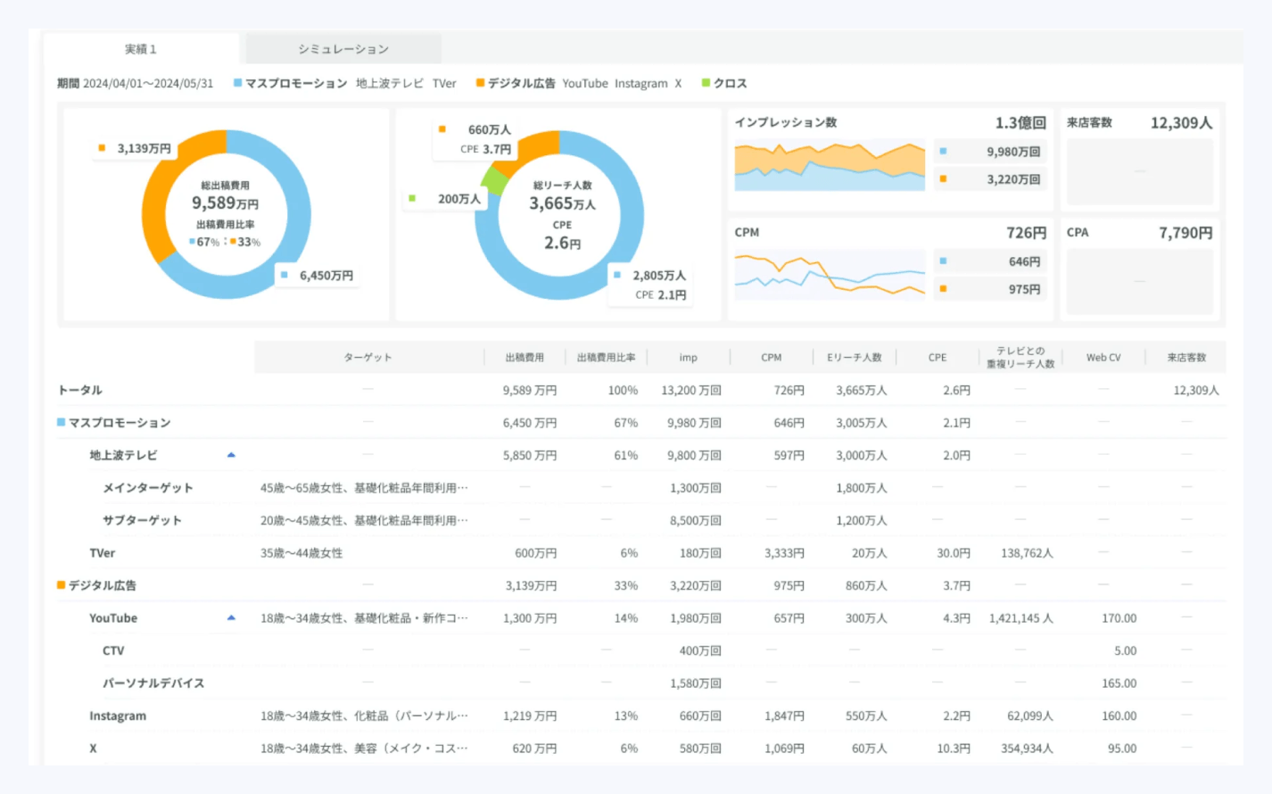 - テレビCMとデジタル広告を統一指標で比較・評価し、費用対効果を可視化