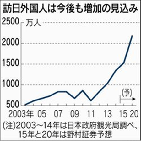 近年、堅調に増加を続ける訪日外国人は、2014年は約1,341万人(日本政府観光局、観光庁調べ)で、2020年の東京オリンピックまでには2,000万人以上(野村證券予測)と言われており、市場規模としては、2014年は2兆278億円(日本政府観光局、観光庁調べ)となり更なる成長市場として期待されています。