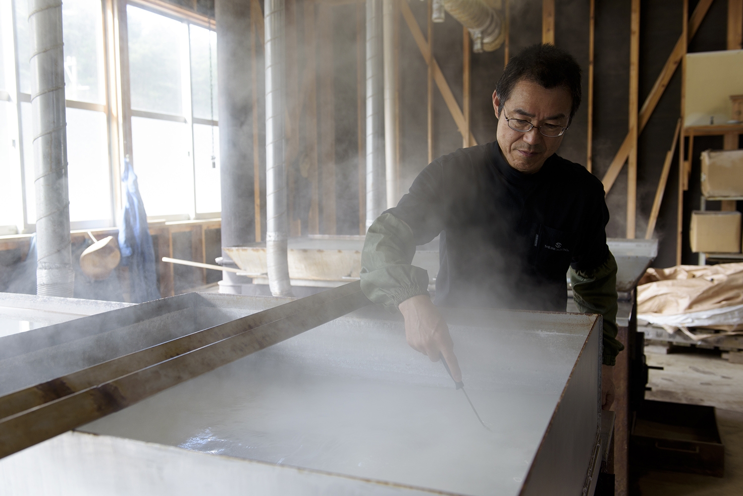津軽海峡の沖合80mの地下20mから汲み上げた海水をタンクに貯蔵し、機械でろ過、紫外線殺菌した上で“直煮法”という昔ながらの製法で作ります。
