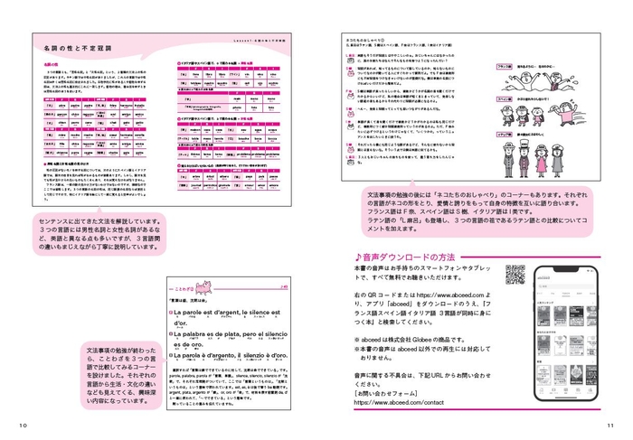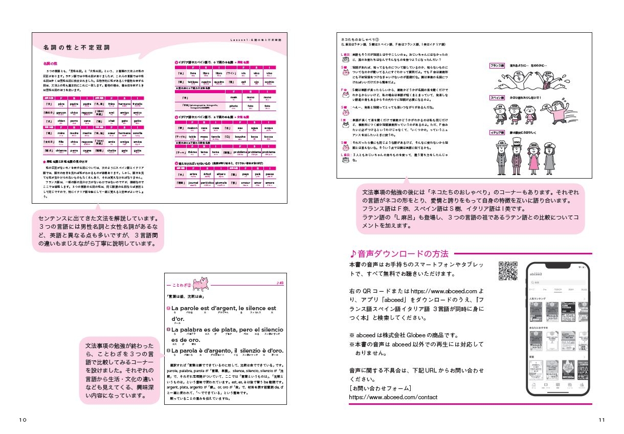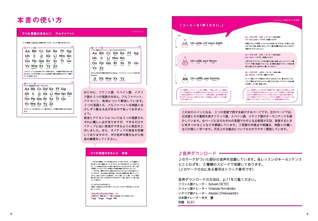 フランス語、スペイン語、イタリア語の3言語をまとめて習得できる「欲ばりな本」が登場!おしゃべりネコたちと一緒に、自分のペースで楽しく勉強しよう