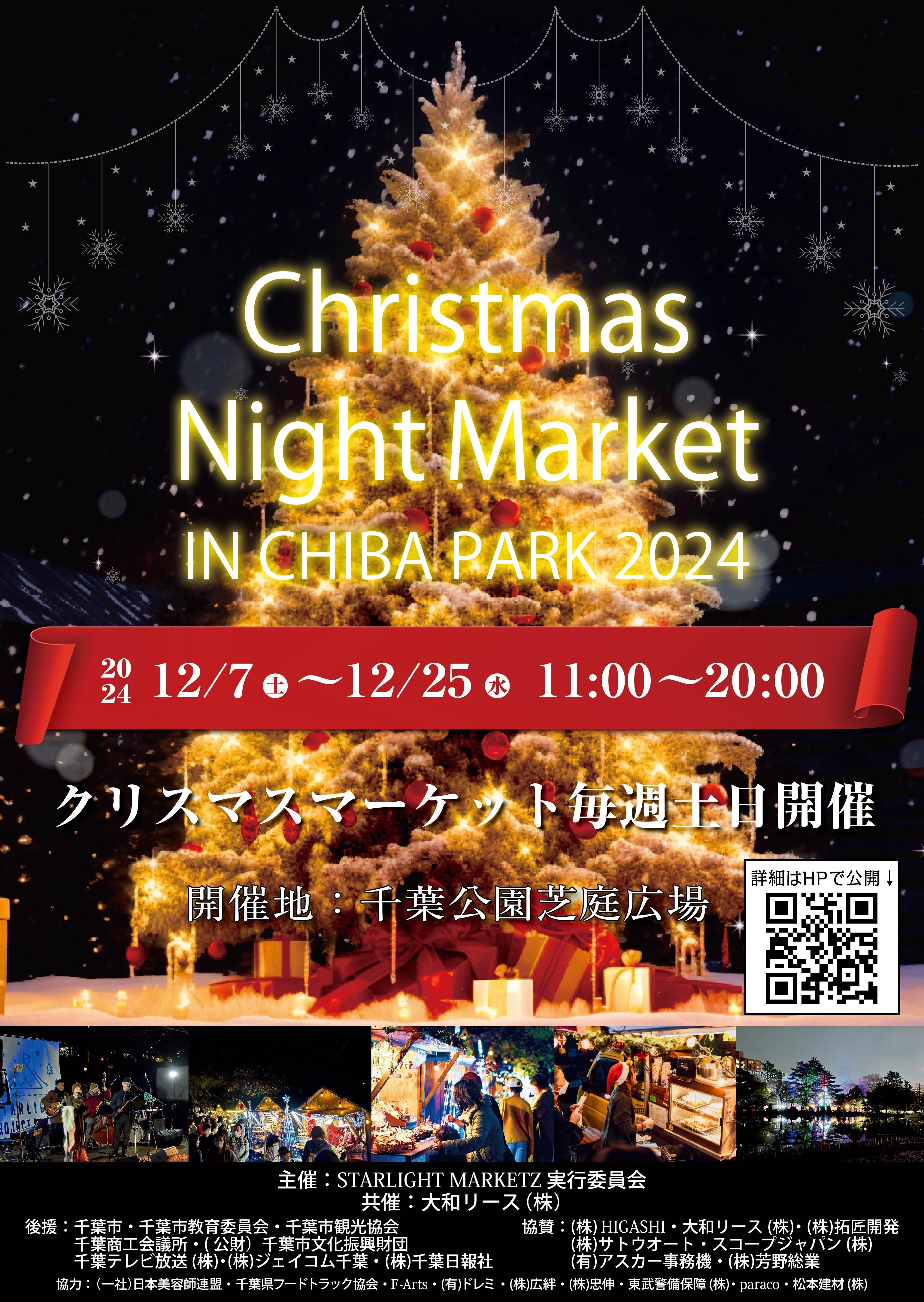 千葉市ナイトタイムエコノミー推進支援事業として、千葉駅北口エリアのリブランディングと活性化を目的に昨年初開催された「Christmas Night Market in Chiba Park」ですが、冬の風物詩として定着させるべく、今年も12月7日(土)~1月30日(木)に千葉公園で開催いたします。